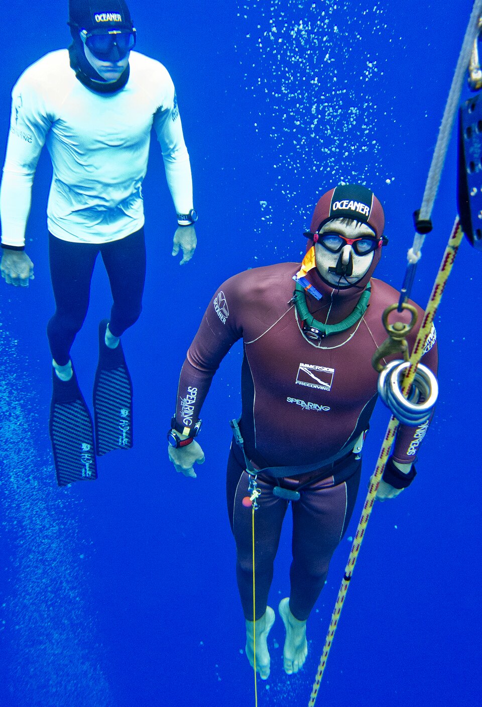 Ted Hardy ascends during a Constant No Fins dive at DejaBlueV enroute to victory with the overall title.